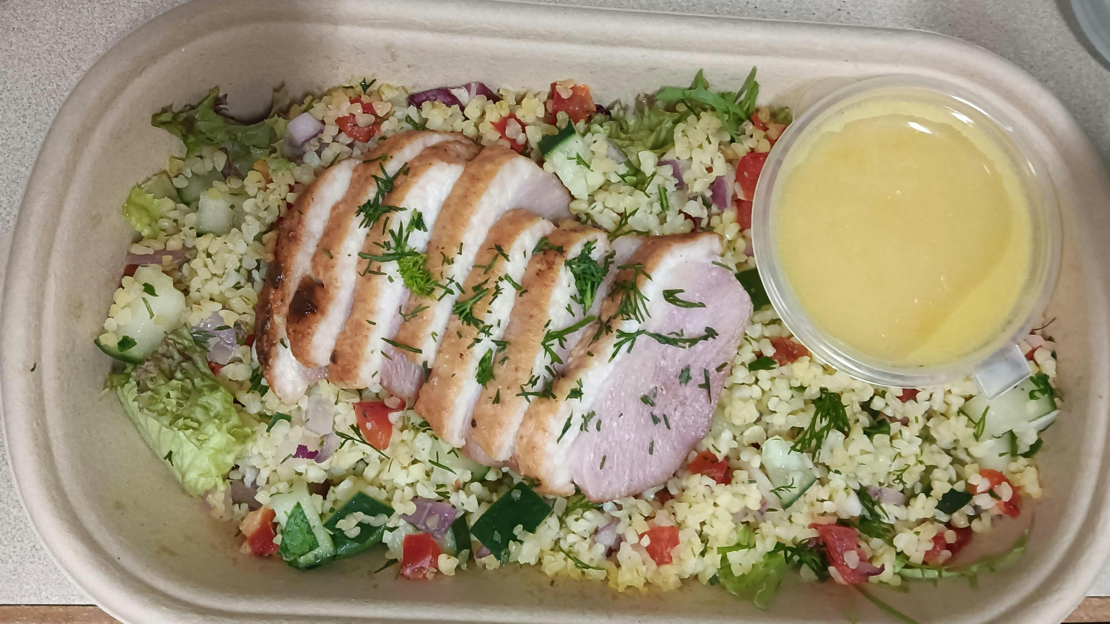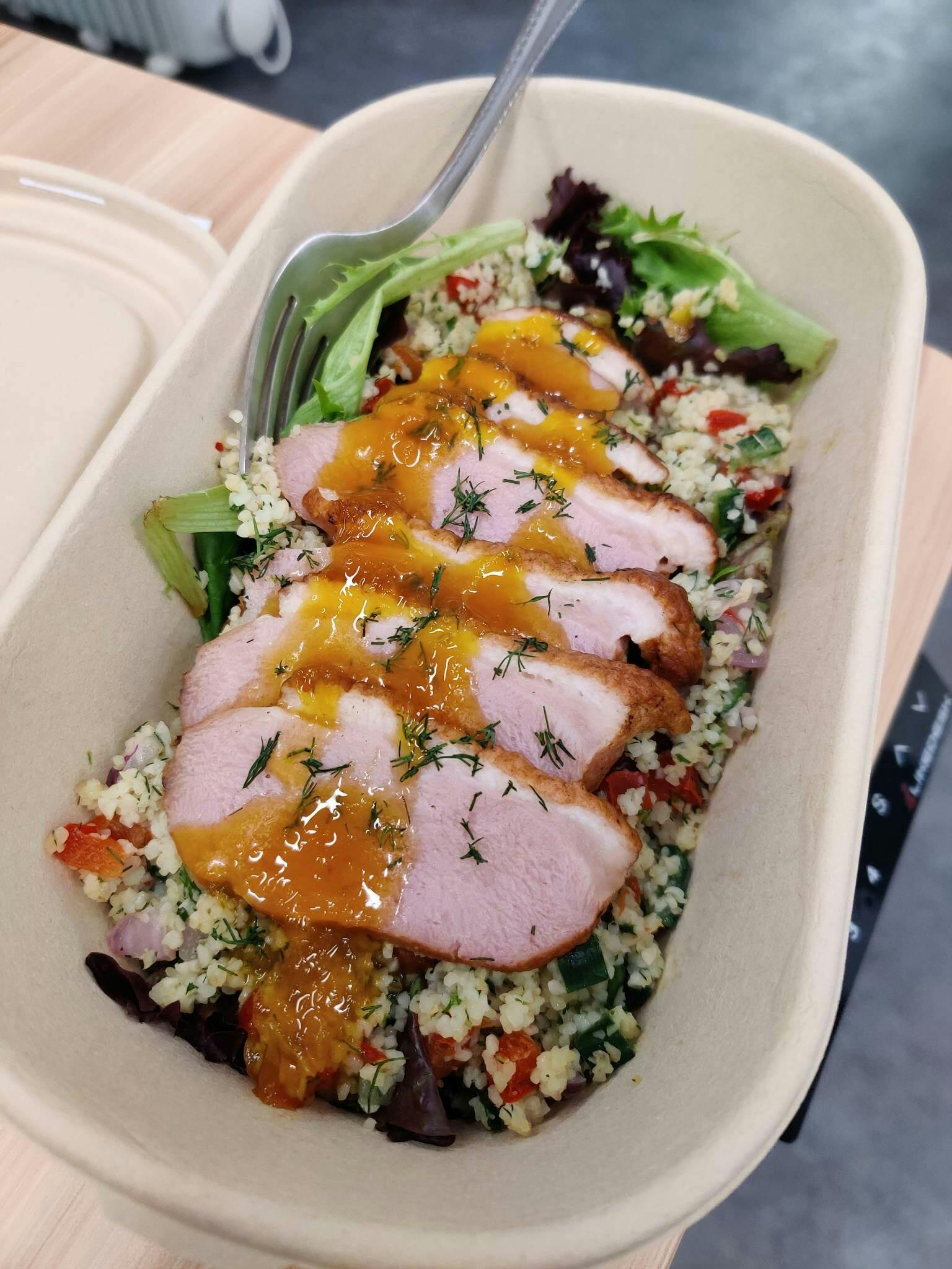 Bulgur Wheat and Smoked Duck Breastwith Mixed Greens & Zesty Orange Dressing